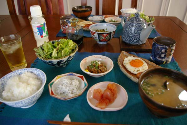 なんだかんだと、いつも同じ様な朝ごはん・・・・・。そろそろ、パンにでもしようかな・・・。