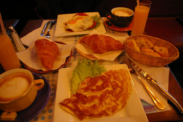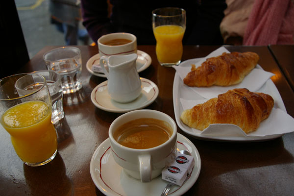 ホテルの近くのカフェでシンプルな朝ごはん♪5.5ユーロ。