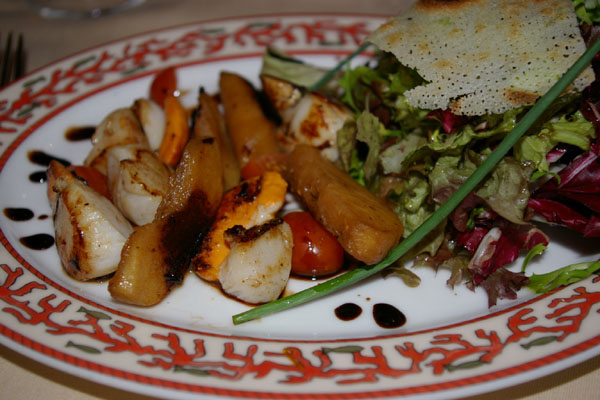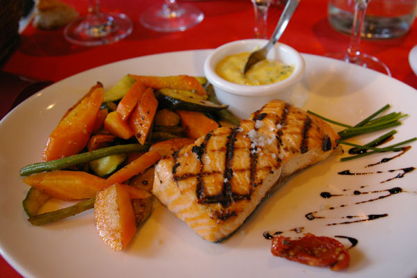 生牡蠣と三種のチーズのグラタン、それとサーモンのグリルにしました。