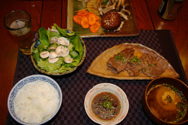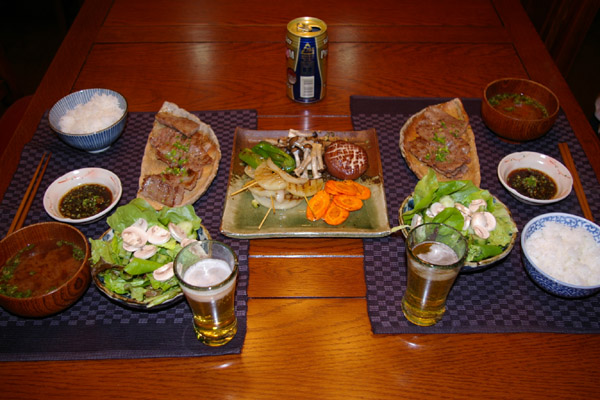夜ご飯♪またまたお母さんから頂いた松坂牛で、焼肉♪そして、頂き物の、大きなしいたけ♪