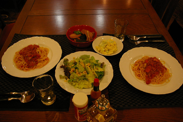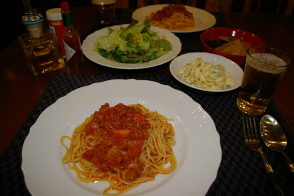 後は、定番のトマトパスタ♪サラダ♪
