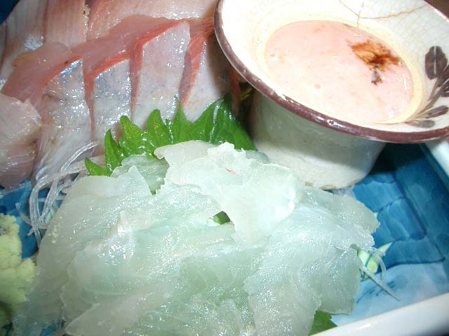 付きだしのぶり大根♪ いなだとカワハギのお刺身♪カワハギは肝をつけていただく♪ (めちゃうま)