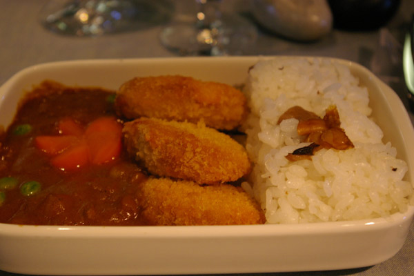 夜ごはんは、もちろん機内食♪でも♪でも♪ビジネスだもぉぉん♪ 今回はカツカレーでした♪