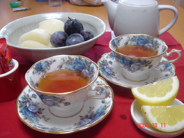 昨日に続き、食欲のほうは、いまいちなので紅茶のみ。一応果物も・・・。