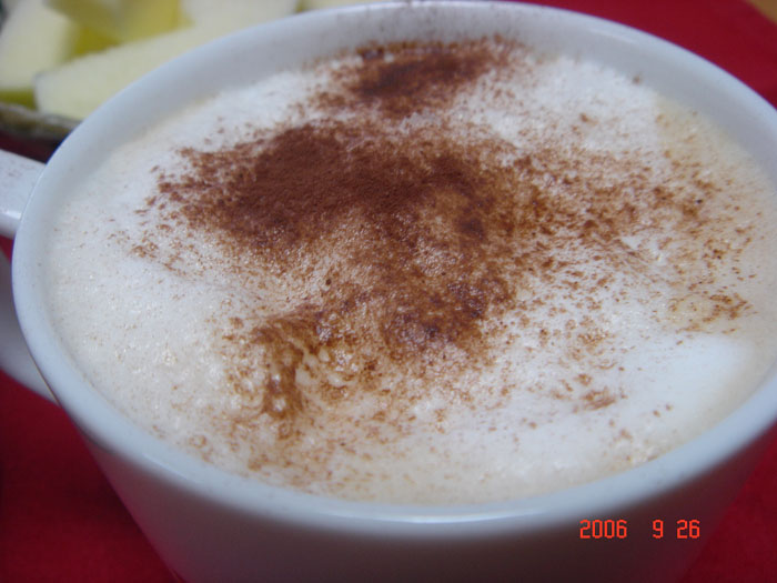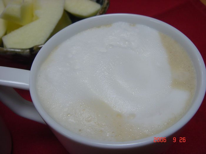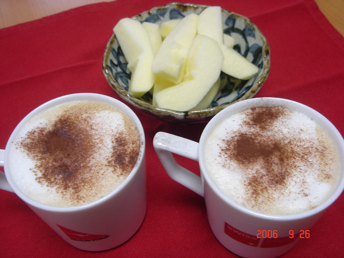 でも、見て!見て!今日のミルクきれいに出来たでしょ?これに、ココアをかけると・・・・・